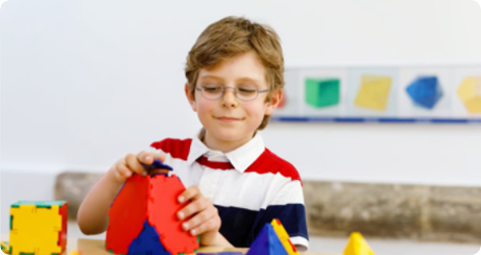 通过几何图形的感知、触摸、亲身体验,增加孩子对空间、立体、平面等的理解并印刻,同时建立:立体﹑等分、长短、大小﹑数与量、几何、空间的概念。